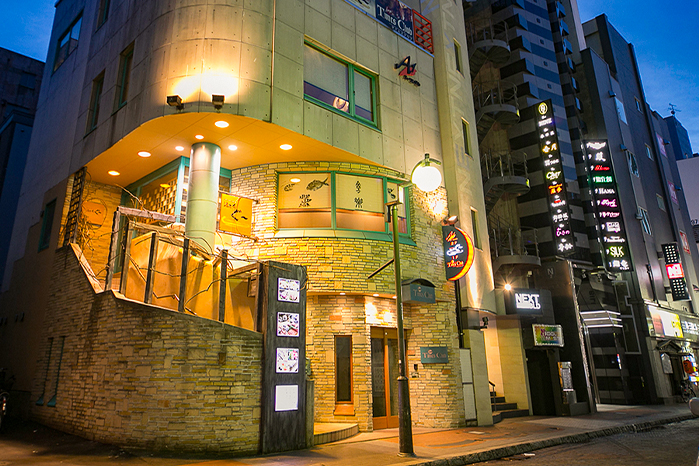 地下鉄南北線「すすきの駅」から中島公園に向かって徒歩3分ほど直進、新宿通りを曲がり少し行くと、レンガ造りの外装のビル、階段登り口には大きく「酒と肴ぐ~」の懸垂幕が見えてきます。