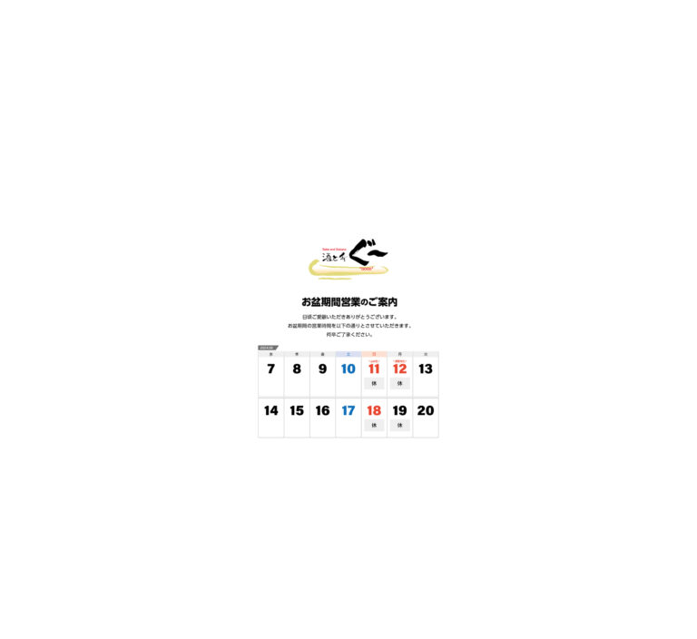 いつもサイトをご覧いただきありがとうございます。8月の祝日「山の日」付近や、お盆期間を含むカレンダー […]